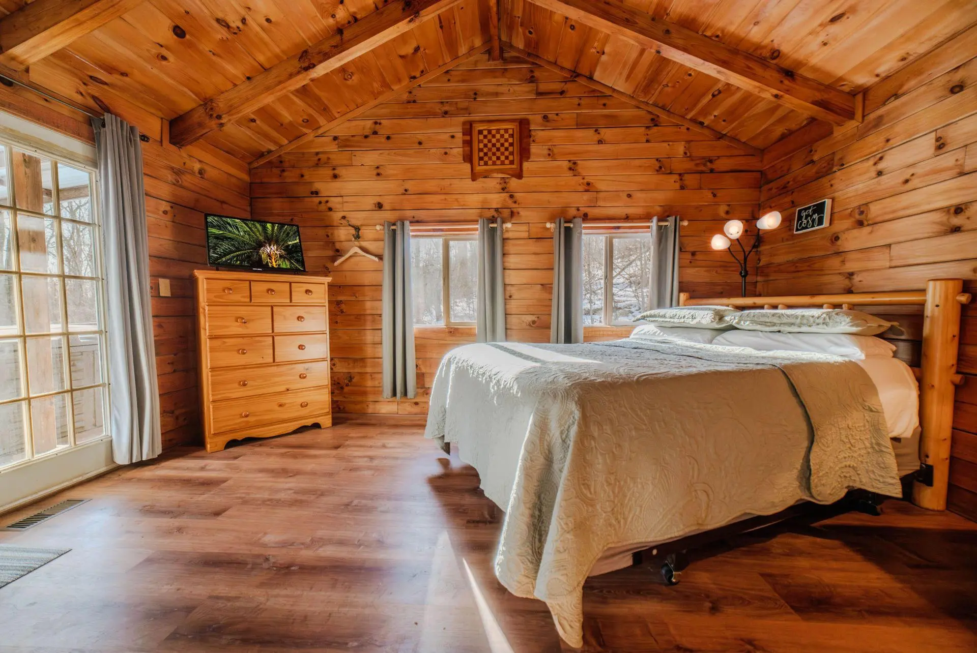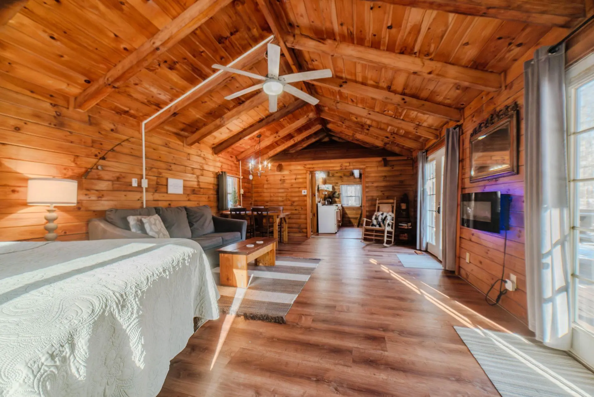 We are a pet friendly cabin business as Pets are allowed in all of our cabins with a $50 one time Fee/Pet. Two pet maximum (2 pets = $100). Pets should not be left unattended in the cabins unless crated. Unauthorized pets will result in doubled pet fees. Owners are responsible for the cleanup of their pets as well as asked to keep pets off of furniture. Excess cleaning from pets can result in extra cleaning fees. We love to travel with our pets but are always respectful of future guests by keeping our pets maintained.