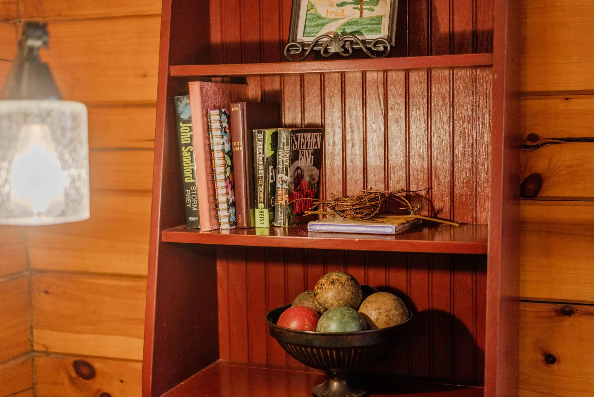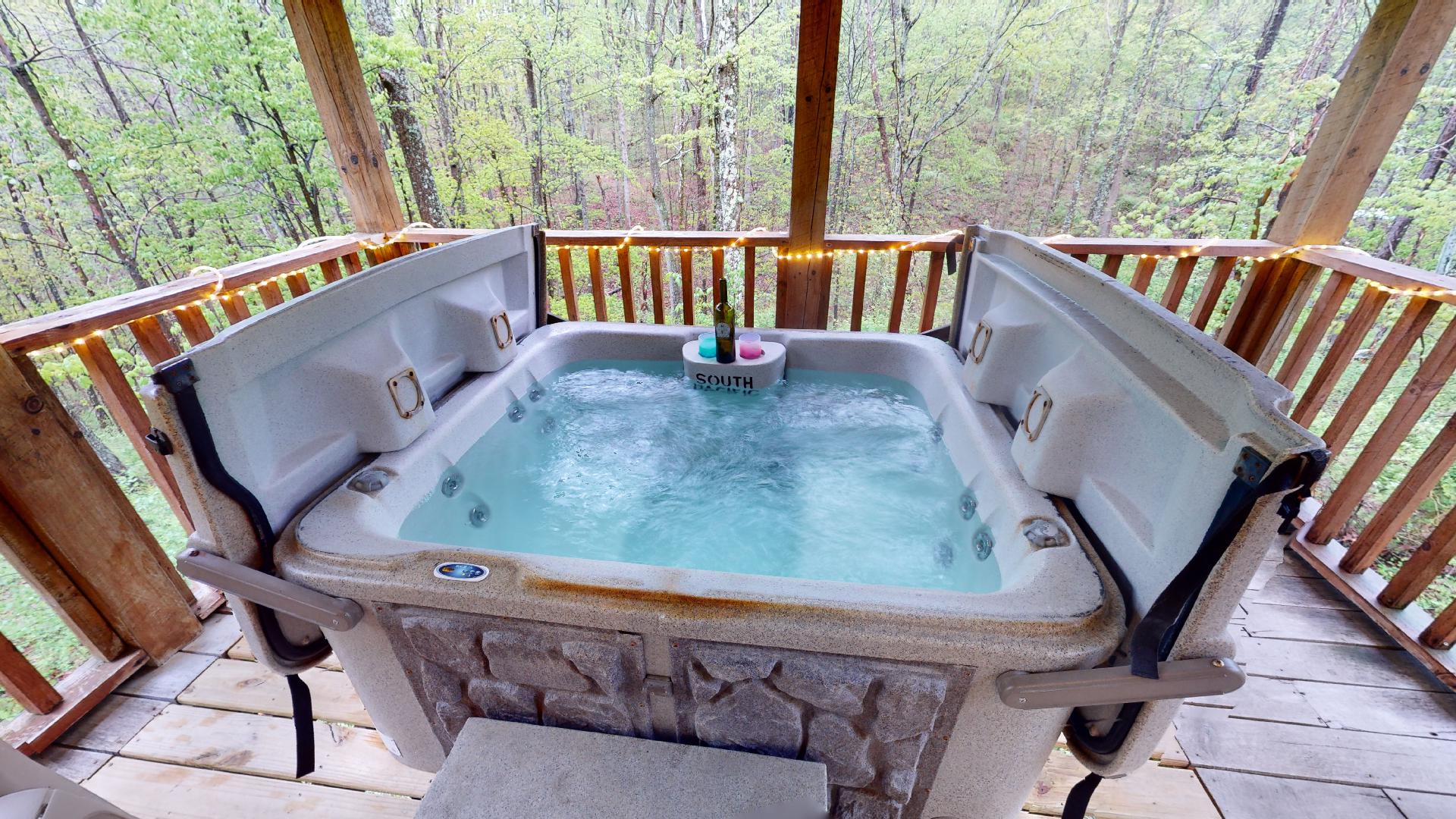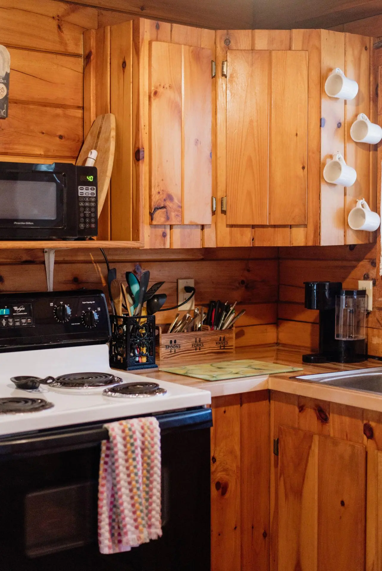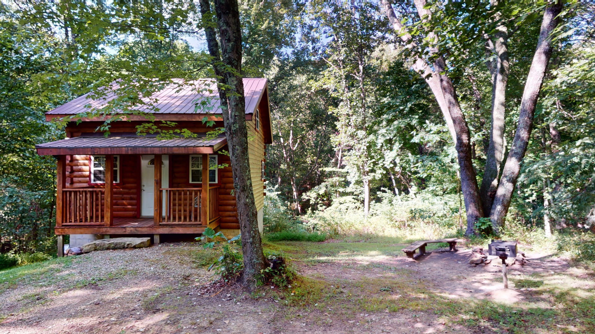 Comfort Two is a romantic couples cabin. It sleeps 2. This beautifully built log cabin is perfect to snuggle and reconnect with your special someone. It is secluded on ten wooded acres and fully furnished with a large loft bedroom overlooking an open family room area. It features a fully equipped kitchen, Roku Smart TV, electric fireplace, and hot tub on a covered back deck.