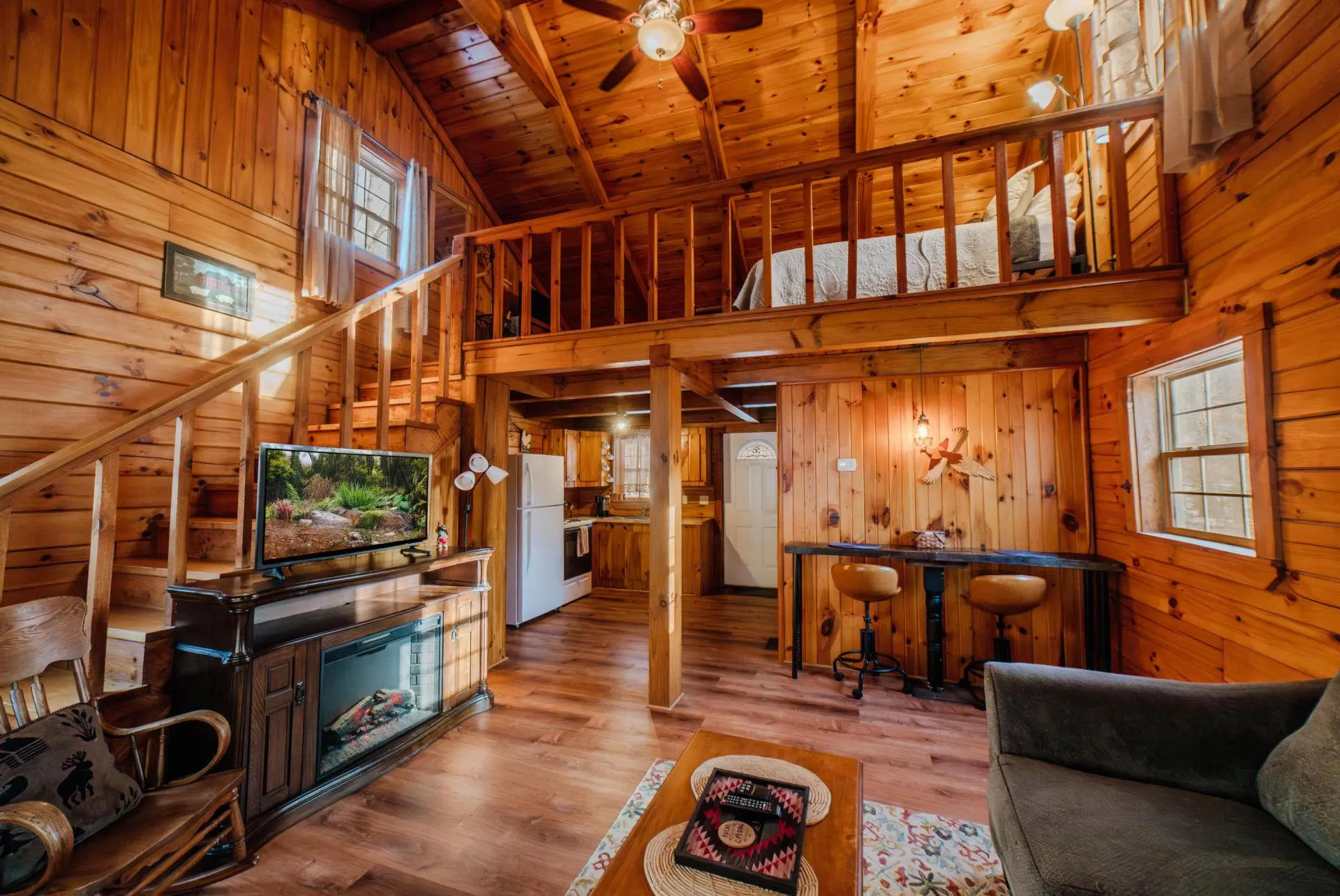 - Couples cabin - sleeps up to 2 guests with Queen Bed in a large open loft overlooking the living room